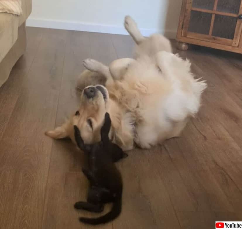 猫さん強いな 子猫にやさしいゴールデンレトリバー 一緒に遊んで負けたふり カラパイア